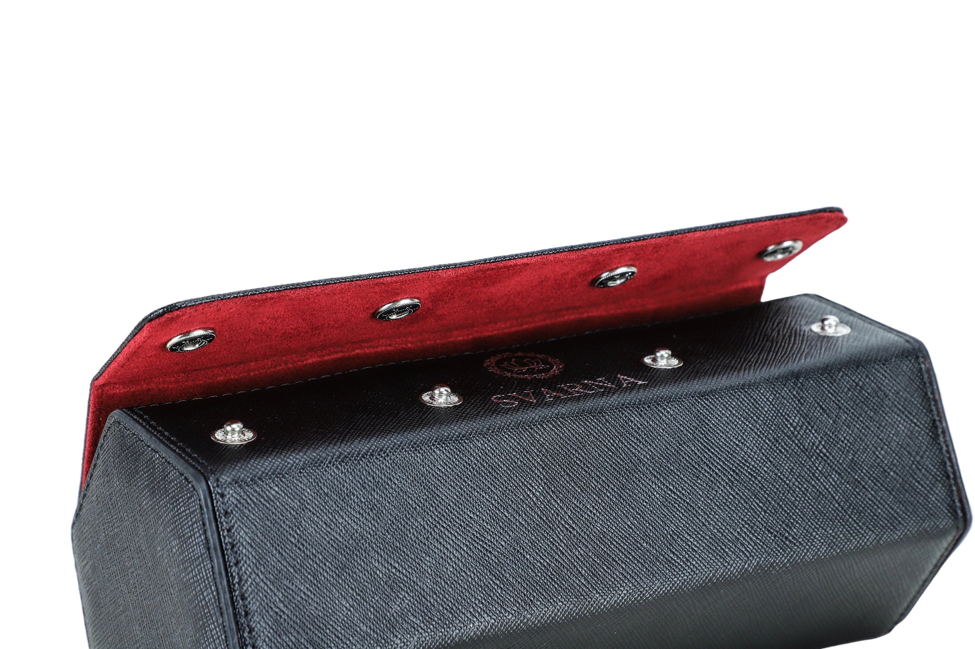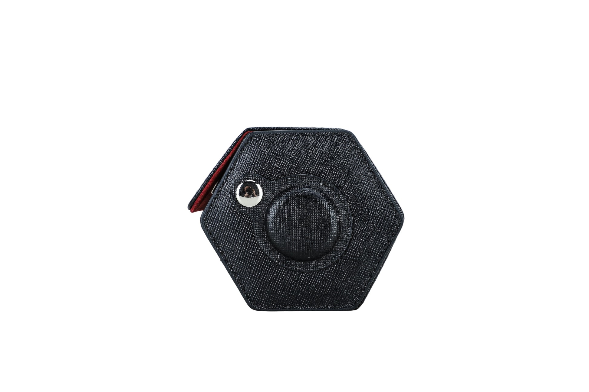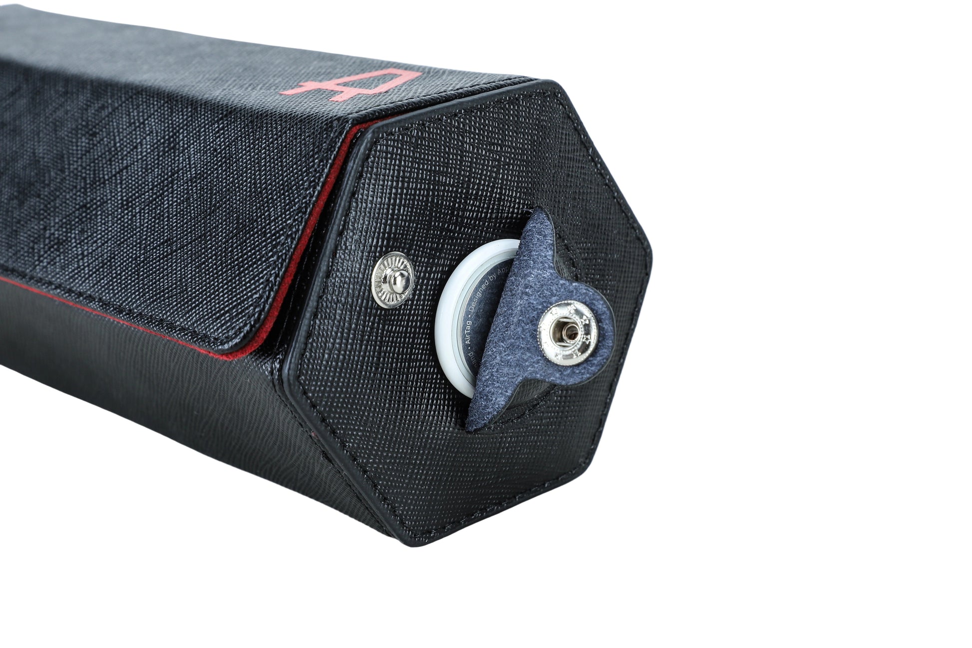 Crafted with imported Red Italian Alcantara® and trimmed with sustainable vegan leather and silver accents, it features sliding, compressible cushions and a concealed AirTag slot for seamless security. Available only to RedBar Raleigh members.